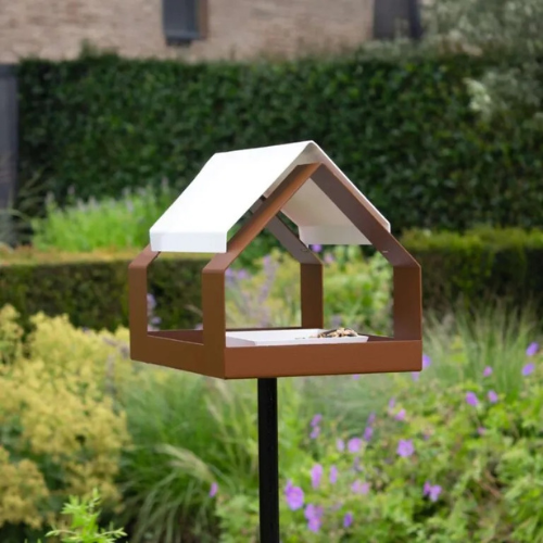 Die Designerin Ilse Bouwens ließ sich von der Schlichtheit und Offenheit einer Scheune inspirieren. Dies spiegelt sich im luftigen und minimalistischen Design wider. Das durchdachte Design dieses Vogelhauses bringt die Natur auf stilvolle und moderne Weise näher. Das warme, herbstliche Braun des Hauses bildet einen erfrischenden Kontrast zum weißen Dach und dem passenden, abnehmbaren Futternapf und schafft so eine harmonische Balance in Ihrem Garten.