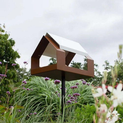 Die Scheune auf Pfahl: Stilvolles Vogelfutterhaus mit ländlichem Charme (braunes Metall) 🌿💙