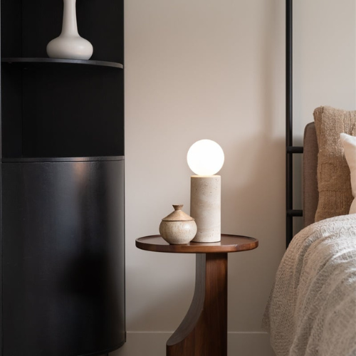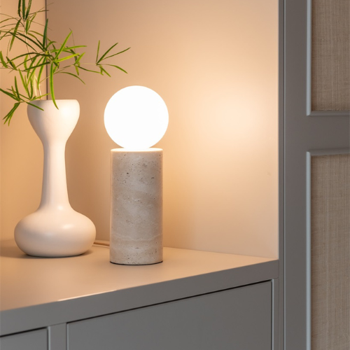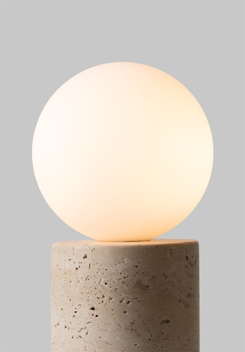 Bestellen Sie noch heute die Tischlampe aus weißem Travertin und erleben Sie die perfekte Balance zwischen natürlicher Schönheit und schlichtem Design.