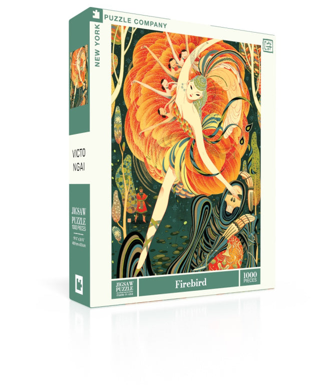 Entdecken Sie das faszinierende Feuervogel-Puzzle der New York Puzzle Company, illustriert vom Künstler Victo Ngai. Dieses 1.000-teilige Puzzle erweckt die mythische Geschichte des Feuervogels mit leuchtenden Farben und Details zum Leben. Jedes Teil ist einzigartig, was die Herausforderung erhöht. Perfekt für Puzzle-Fans ab 13 Jahren.