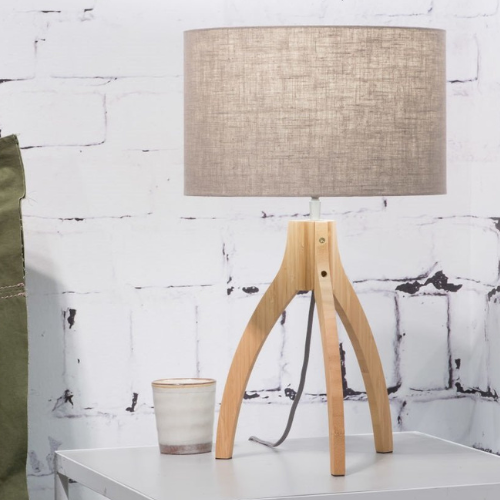 Good&Mojo Tischleuchte Bambus 3-Bein Annapurna H.54cm/Schirm 32x20cm, Leinen dunkel