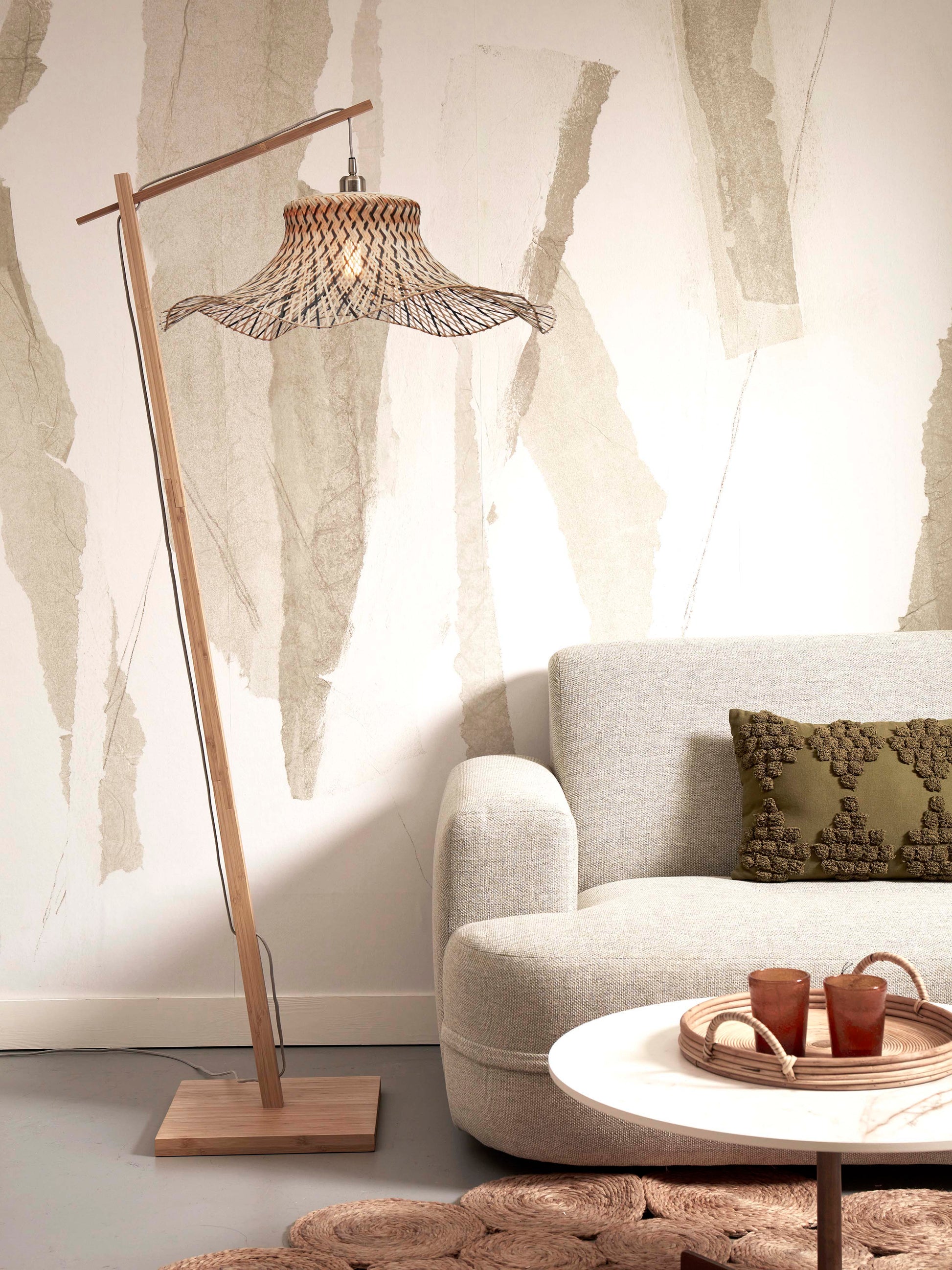 Good&Mojo Stehleuchte Ibiza L Bambus gewellt nat. H.176cm/Haube 65x20cm. s/w.