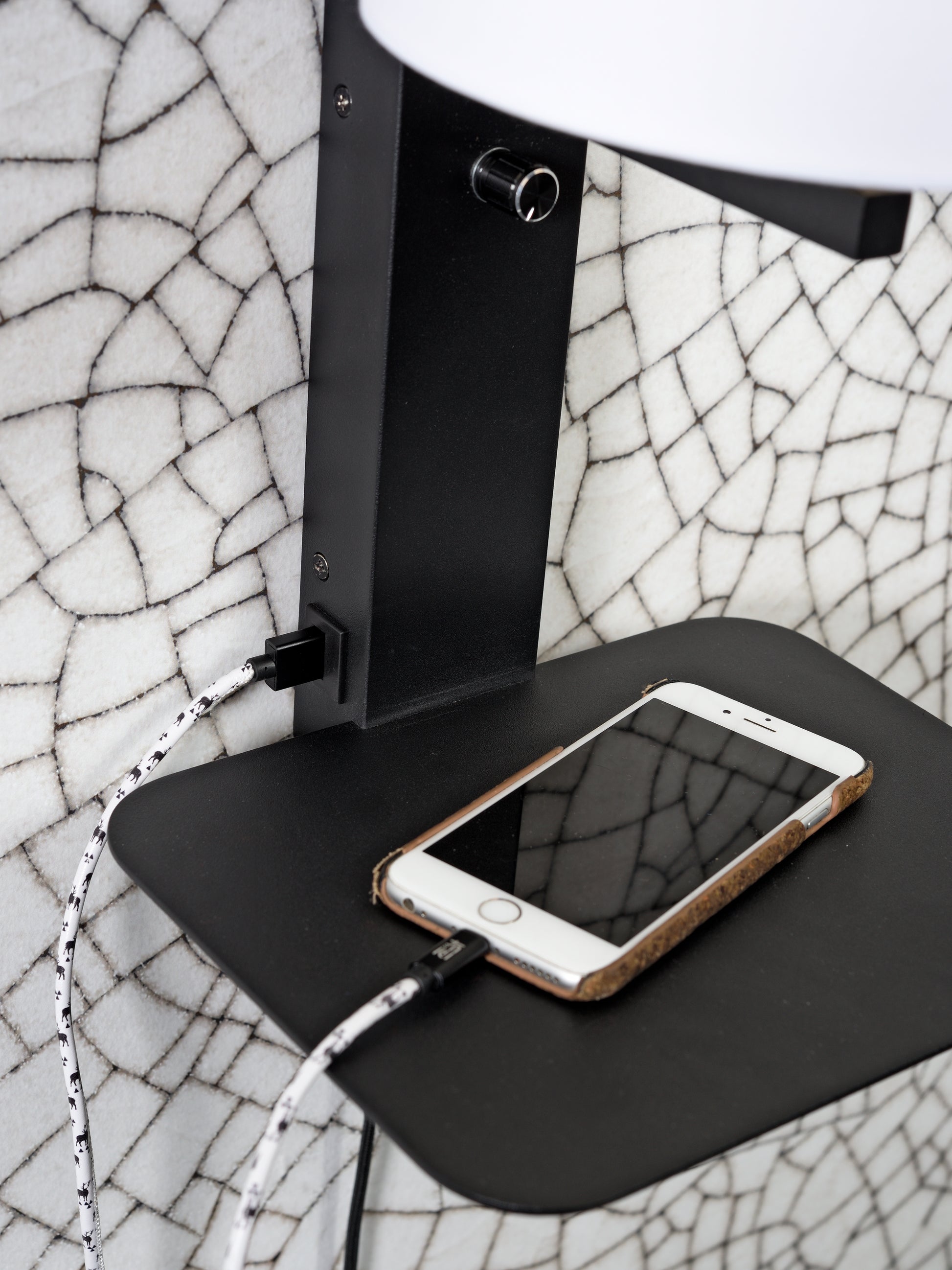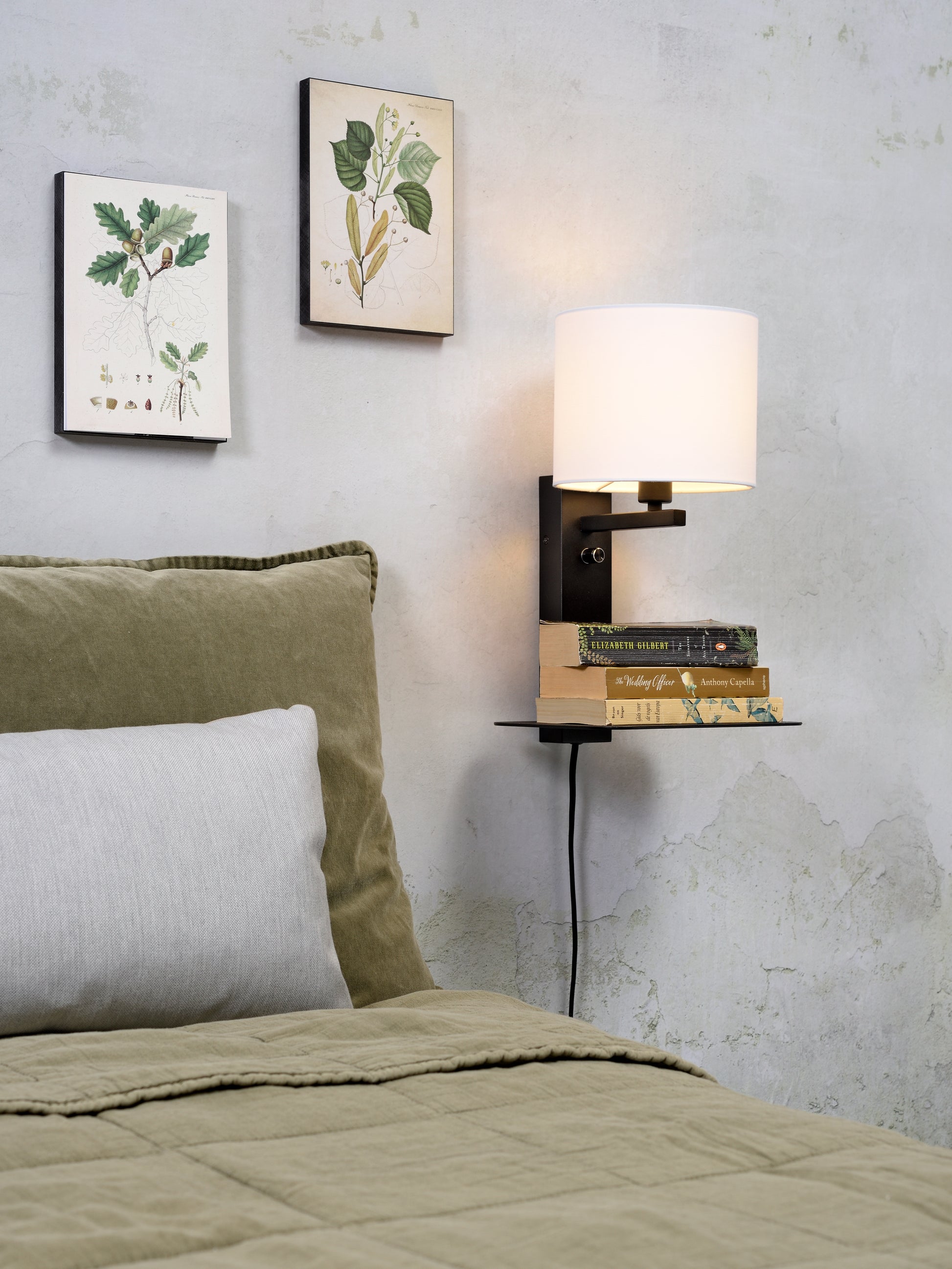 It's About Romi Wandleuchte Eisen Florence E14 m. Ablage + USB H.42cm inkl. Dimmer / Schirm 18x15cm, weiß