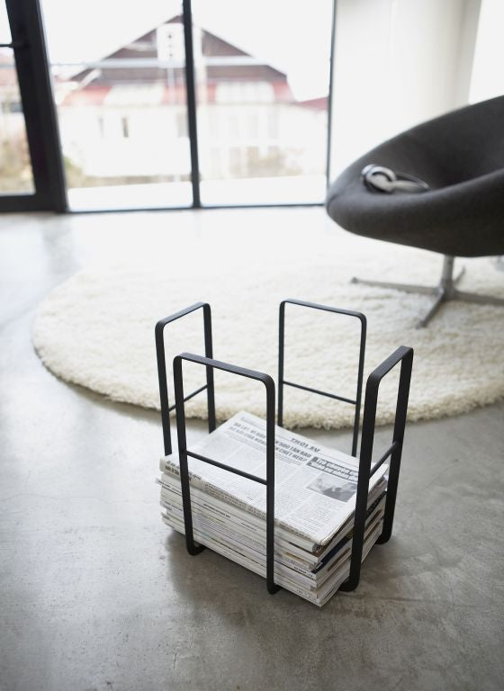 Dieser schlichte und stilvolle Zeitungs- und Zeitschriftenständer ist nicht nur als Akzentstück im Raum gedacht, sondern auch als funktionaler Organizer. Das Design verfügt über ein Loch an der Unterseite, sodass Sie problemlos eine Banderole um die Unterseite der Zeitungen oder Zeitschriften kleben und diese so bequem zum Recycling bündeln können.