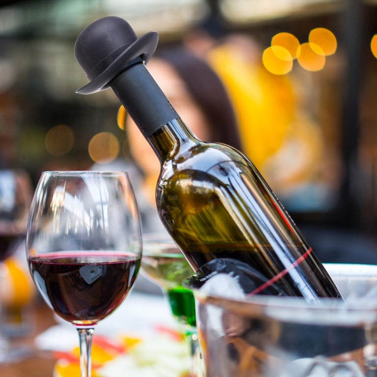 Enjoy wine in style and tranquility with Monkey Business' silicone Bowler Hat bottle stoppers! Add elegance to your wine experience by sealing your bottle airtight with these charming hats. Perfect for a touch of sophistication with every sip!
