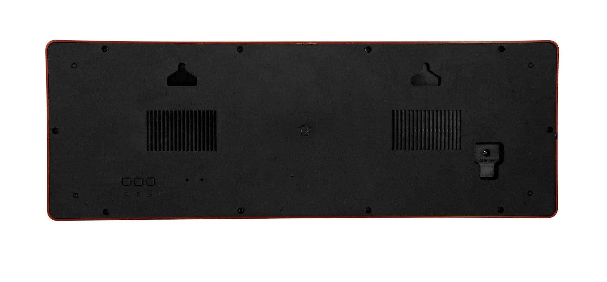 De NeXtime 'Big D' is een grote digitale wand- en tafelklok (51,5 × 18 cm) met zwart kunststofbehuizing, glazen wijzerplaat en rode LED-weergave. Helder afleesbaar op afstand, ideaal voor openbare ruimtes en kantoren. Werkt op netstroom; 4 m kabel en universele EU/US/UK-adapter inbegrepen. 2 jaar garantie.