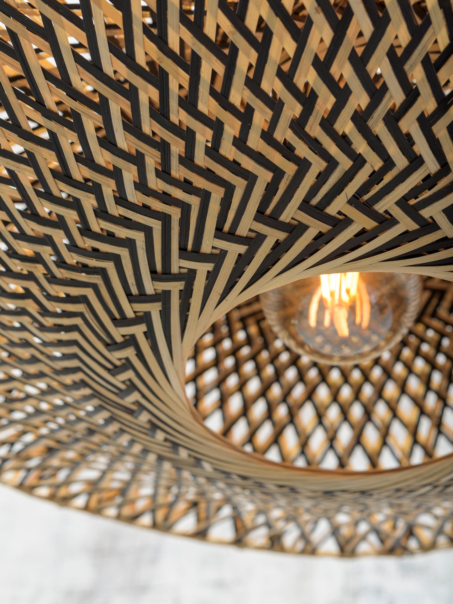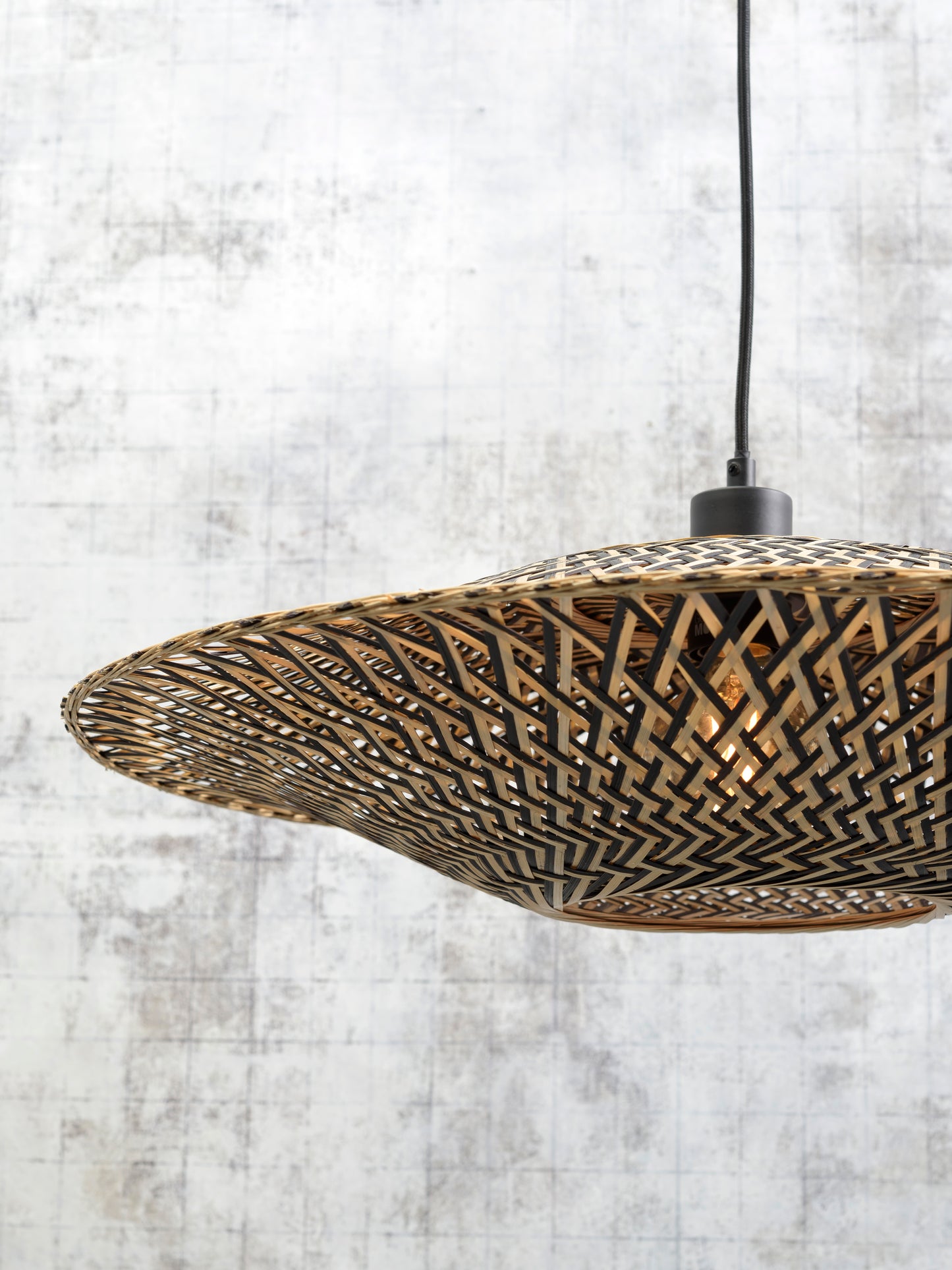 Met zijn slanke, hoge ontwerp en natuurlijke materialen is de Bali vloerlamp van Good&Mojo een stijlvolle aanvulling in elke kamer. De zwarte basis gecombineerd met een subtiele bamboe kap straalt rust uit. Perfect naast de bank, leesstoel of in een modern natuurlijk interieur.